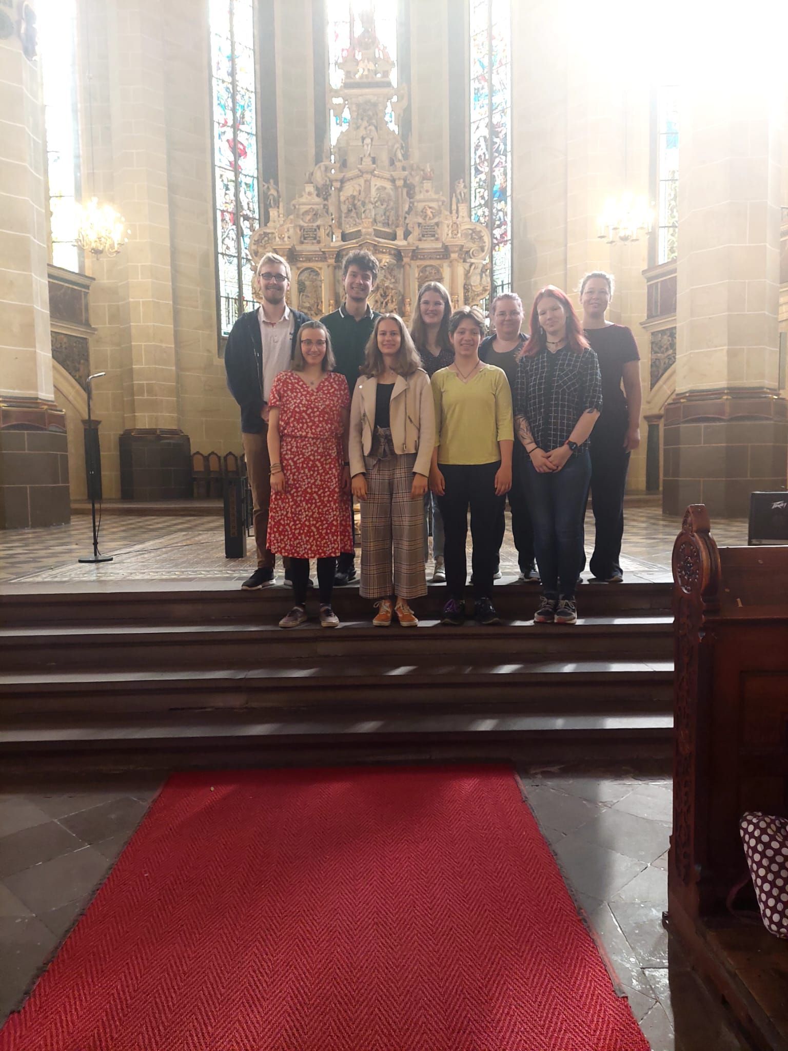 Zum Abschluss folgte dann am Sonntag der Gottesdienst in Pirna, den wir musikalisch mitgestaltet haben. Durch die Vollsperrung des Hauptbahnhofs in Dresden verlängerte sich unsere anschließende Rückreise um 90 Minuten. In diesem Zusammenhang unsere Musikempfehlung der A-Cappella-Band Alte Bekannte mit dem Song „Deutsche Bahn“.
